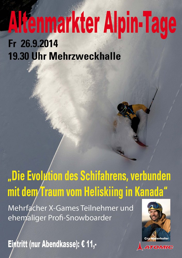 Bei den diesjährigen Alpintagen am 26. und 27. September erwartet Gäste und Einheimische eine spannende Kombination passend zum derzeitigen Freeride- und Skitourenboom, sowie alpine Präsentationen von Extrembergsteigern - ausgewählt von Veranstalter Sigi Brachmayer.