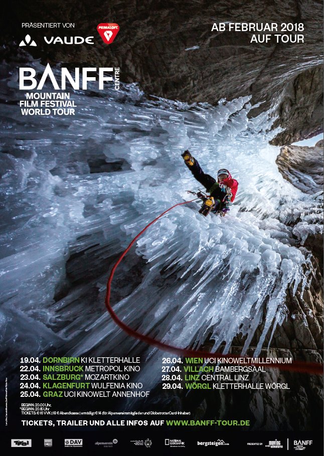 Das Banff Mountain Film und Book Festival ist seit nunmehr 42 Jahren eine feste Instanz im Kalender von Filmemachern, Fotografen sowie Athleten und zählt zu den renommiertesten Bergfilmfestivals der Welt. Jedes Jahr im Herbst werden im kanadischen Städtchen Banff die „Outdoor Oscars“ verliehen. Im Anschluss geht eine Auswahl der prämierten Filme auf große Weltreise und zaubert spannende Abenteuer- und Outdoorgeschichten auf die große Leinwand. Wir bringen das Banff Film Festival für Euch nach Österreich mit Stopps in 10 Städten und garantiert auch in Eurer Nähe.