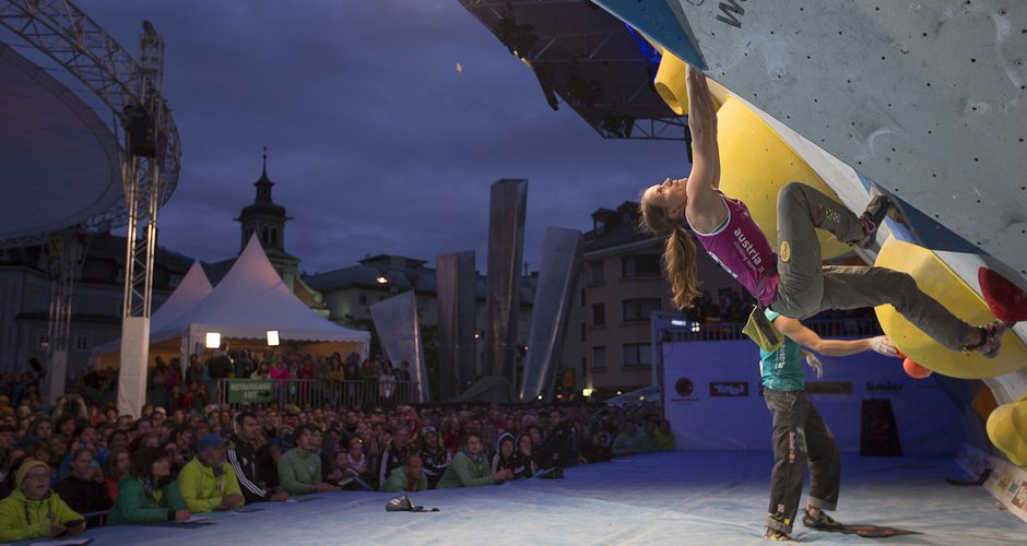 Rund 180 Athletinnen und Athleten aus 30 Nationen blasen im Rahmen der IFSC European Bouldering Championship 2015 presented by MAMMUT zur Titeljagd in Innsbruck! Organisiert vom Österreichischen Wettkletterverband (ÖWK) kommt neben den sportlichen Höchstleistungen der Boulder-Stars, allen voran Österreichs Titelverteidigerin Anna Stöhr und der EM-Bronzemedaillengewinner von 2013, Jakob Schubert, auch der Breitensport am Fuße der Nordkette zum Zug. Als Teil des umfangreichen EM-Rahmenprogramms lädt der legendäre MAMMUT Blocmaster Boulder Jam, der Boulder-Contest für alle Generationen, auch heuer zum Szene-Come-Together in professionellem Ambiente. Der Startschuss fällt bereits am Mittwoch, 13. Mai 2015, mit der offiziellen Opening Ceremony und House-Diva Terri B! Green live on stage in der Arena am Innsbrucker Marktplatz. Spannung pur steht vom 14. bis 16. Mai auf dem Programm: Am Donnerstag (Qualifikation) und Freitag (Halbfinale) gilt es für die AthletInnen die heißbegehrten Finaltickets für den samstäglichen Showdown zu sichern. Im EM-Finale der Damen und Herren am 16.05.2015 kämpfen die Größen der Boulderszene vor 4.000 erwarteten Zuschauern um Gold, Silber und Bronze im “Hexenkessel” im Herzen der Stadt!