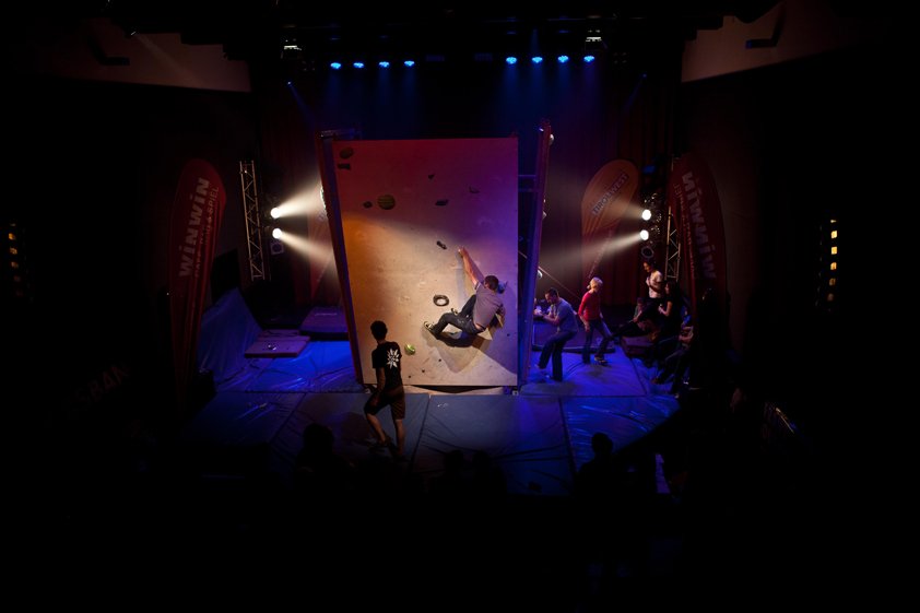 jeweils drei Kletterern an einer 2,5 – 3 m hohen Kletterwand versuchen, in möglichst kurzer Zeit neun definierte „Boulderprobleme“ zu lösen. Das Team, welches alle Probleme (bzw. soviele wie möglich) in der kürzesten Gesamtzeit löst, gewinnt den