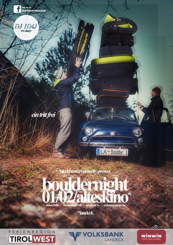 Als Veranstalter geben sich dieses Jahr die BLOCKBUSTERS die Ehre. Die BLOCKBUSTERS sind ein neu gegründeter Zweigverein des SV Goidinger Zams und möchten sich mit diesem Event zum Einen vorstellen und zum Anderen den Klettersport als solchen bewerben. Der Verein wurde in erster Linie mit dem Ziel gegründet, Kletterinteressierten im Talkessel und darüber hinaus die Möglichkeit zu geben, in Berührung mit dem Klettersport zu kommen, sich mit anderen Kletterern auszutauschen und einfach nur um sich mit Gleichgesinnten auf Kletterabenteuer zu begeben.