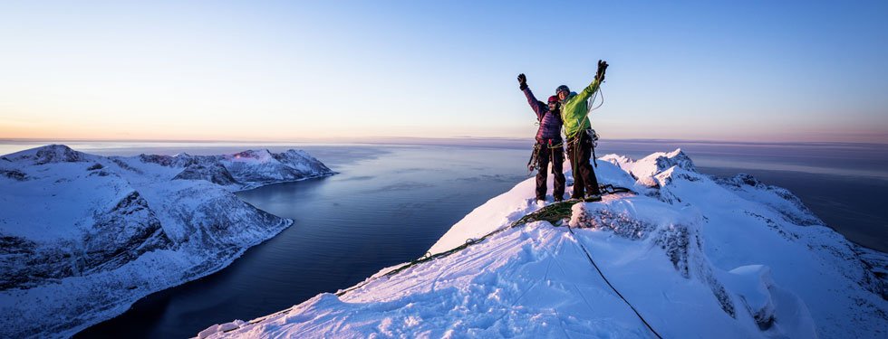 Eisklettern in Norwegen: 2013 gelingt ihr nördlich des Polarkreises auf Senja-Island die Neutour "Finnmannen" (M9+/W17 clean, 400 m).