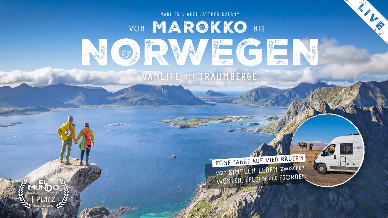 Beim El Mundo Abenteuer- und Reisefestival 2024 wurde ihre Live-Reportage mit dem ersten Preis „Bester Vortrag“ ausgezeichnet, dem „Oscar“ der deutschsprachigen Vortragsszene. Good Vibes garantiert, mit Live-Gitarre und Mundharmonika!