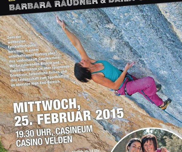 Zwei der weltbesten Felskletterfrauen berichten in einem unterhaltsamen Vortrag über ihre Leidenschaft Sportklettern. Mit faszinierenden Bildern und Videos berichten sie über spannende Erlebnisse, farbenfrohe Reisen und ihre Leidenschaft zum Sportklettern im obersten High-End-Bereich.