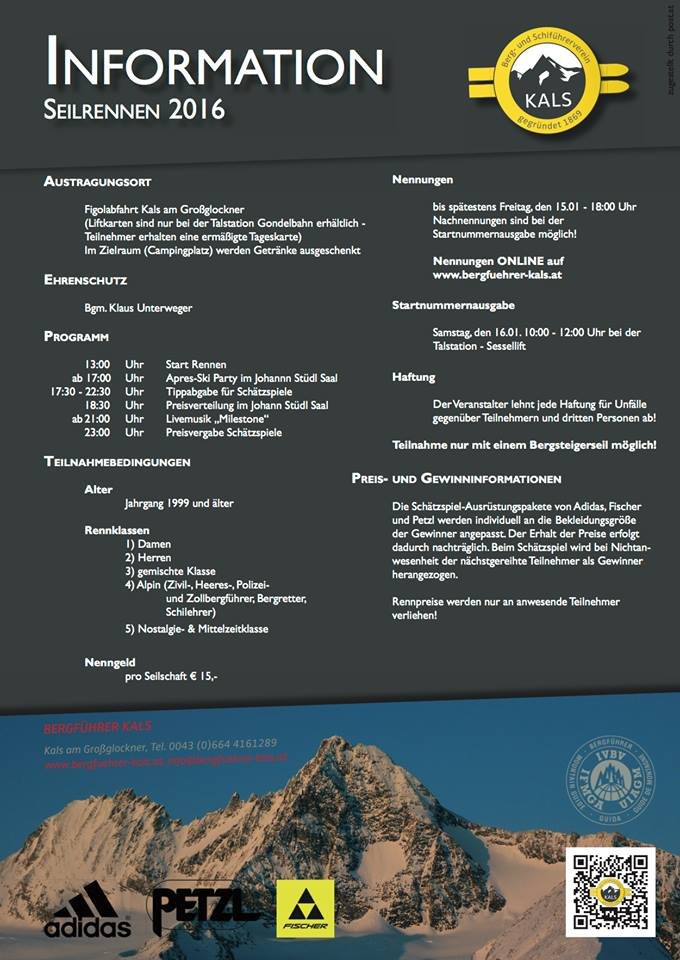 Am Samstag den 16.1. findet im Skigebiet "Kals am Grossglockner" das Seilrennen 2016 statt.