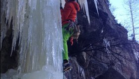 Neue Mixedtour im Ochsengarten, die Linie hat nicht immer Eis. Unten Mixedgelände, auch mit Graspolstern, in der Mitte dann schwerer und oben mit einem Ausstieg an gelbem Eis.