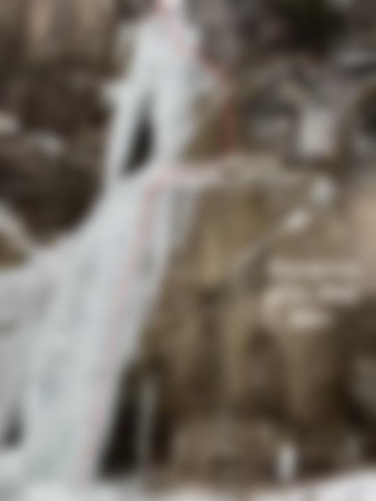 2. Seillänge: Vom Eisstand hoch zum Bohrhaken dann links über steile Eisstrukturen weiter nach oben. Nach dem Ausstieg links zum Baum. Abseiler (mit 60 m machbar. Dann aber 5 m abklettern) zum Einstieg.
