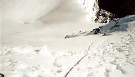 Relativ kurze, aber steile Eiswand, die nach oben hin immer steiller wird. Vom Visper- und Mattertal her sehr eindrucksvoll anzusehen. Bis in den Frühsommer hinein findet die Wand stets ihre Begeher, doch kann man bei ihr kaum von einer "Modetour" sprechen. Das liegt vielleicht auch daran, dass die Wand nach schneearmen Perioden im obersten Teil, später auch in Einstiegsnähe zur baldigen Ausaperung neigt, was eine Begehung nicht empfehlenswert macht. Besonders die Steinschlaggefahr ist dann drastisch erhöht. Zu- und Abstieg sind dagegen mit keinen nennenswerten technischen Schwierigkeiten verbunden.