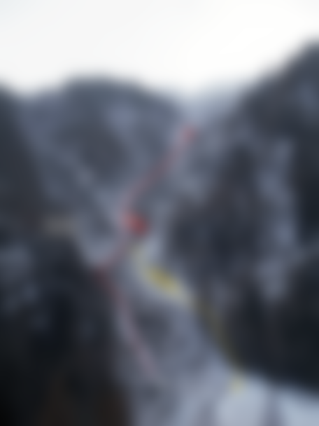 Vom Parkplatz nach Süden, über die Brücke, bis man auf eine Lichtung gelangt (ca. 450m). Dann für weitere 500 Meter in westlicher Richtung auf einem Forstweg, bis man den Wasserfall bereits einsieht. Nun in südwestlicher Richtung über die Wiese hoch zum Einstieg des Wasserfalls. Hier Depot machen.