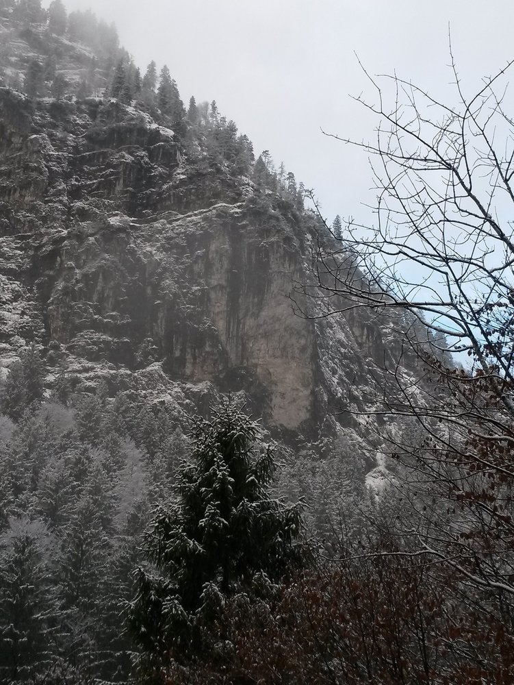 Abwechslungsreiche, kraftraubende Mixed-/ bzw. Drytoolingmehrseillängentour in direkter Nähe zur berühmten Kasmarie - sollte sich diese mal wieder nicht besteigen lassen. Die 4 Sl sollten ob ihrer Kürze zeitlich nicht unterschätzt werden. Die Tour fordert den versierten und erfahrenen Mixed-Kletterer, der seine Klettertechnik kreativ einsetzen kann. Von anfänglich gefrorenen Graspolseraufschwüngen über Riss- und Verschneidungskletterei bis hin zu harten Zügen an kleinen Hooks ist alles geboten. Die richtige Hooksuche kann vor allem bei Schnee in der Wand Zeit in Anspruch nehmen. In der 2. und letzten Sl wurden insgesamt 5 Hooks aufgebohrt, da diese Längen sonst nicht möglich gewesen wären. Die meisten Passagen gut, manche Stellen fordernd mit Bohrhaken abgesichert. Ein solides Tooling-Niveau sollte vorhanden sein! Eine Begehung ist erst ab Temperatur unter 0°C vorzunehmen, da sonst die Graspolster irreversibel zerstört werden. Auch kurze brüchige Passagen lassen sich in gefrorenem Zustand angenehmer und sicherer beklettern.