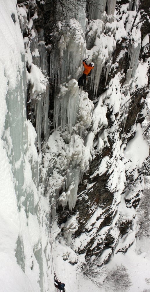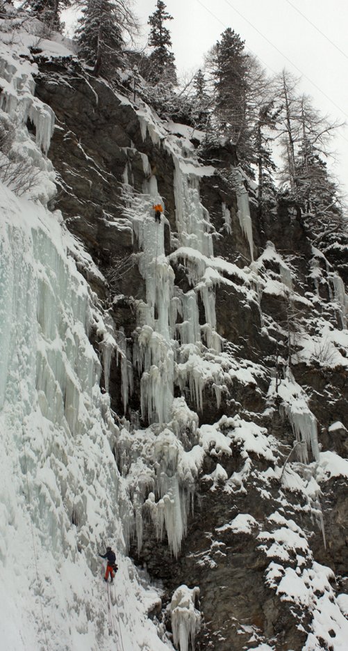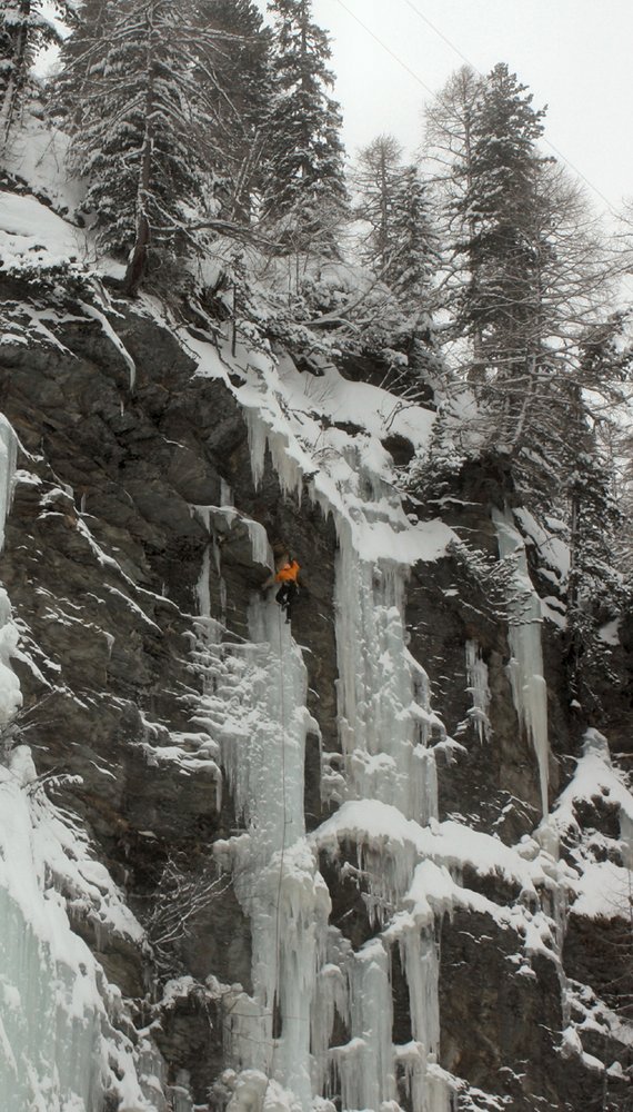 Die Route wurde von Unten Erstbegangen und ist eher im Oberen Bereich der Eiskletterschwierigkeiten bzw. Absicherungsmöglichkeiten Anzusiedeln.