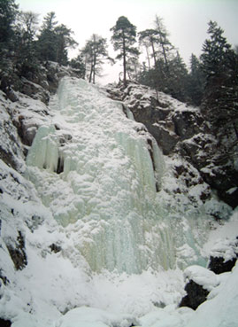 Äußerst lohnender Einsteiger-Eisfall in der Eisregion Weißbach/Hohlwegen. Das breite Eisschild mit seinen 55 m Höhe hat viele Möglichkeiten und bietet auch mehreren Seilschaften Platz. Oben wartet ein sicherer Bohrhakenstand und der Abstieg geht gemütlich über rechts zu Fuss. Es gibt auch auf dem Weg zum Wasserfall noch einige Übungsmöglichkeiten.