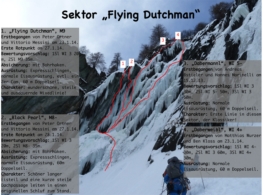 Derzeit 4 Touren: WI 4+, WI 5-, M8- und M 9.