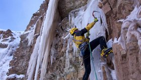 Abendrot: WI4, 40 m Abseilen an Abalakov