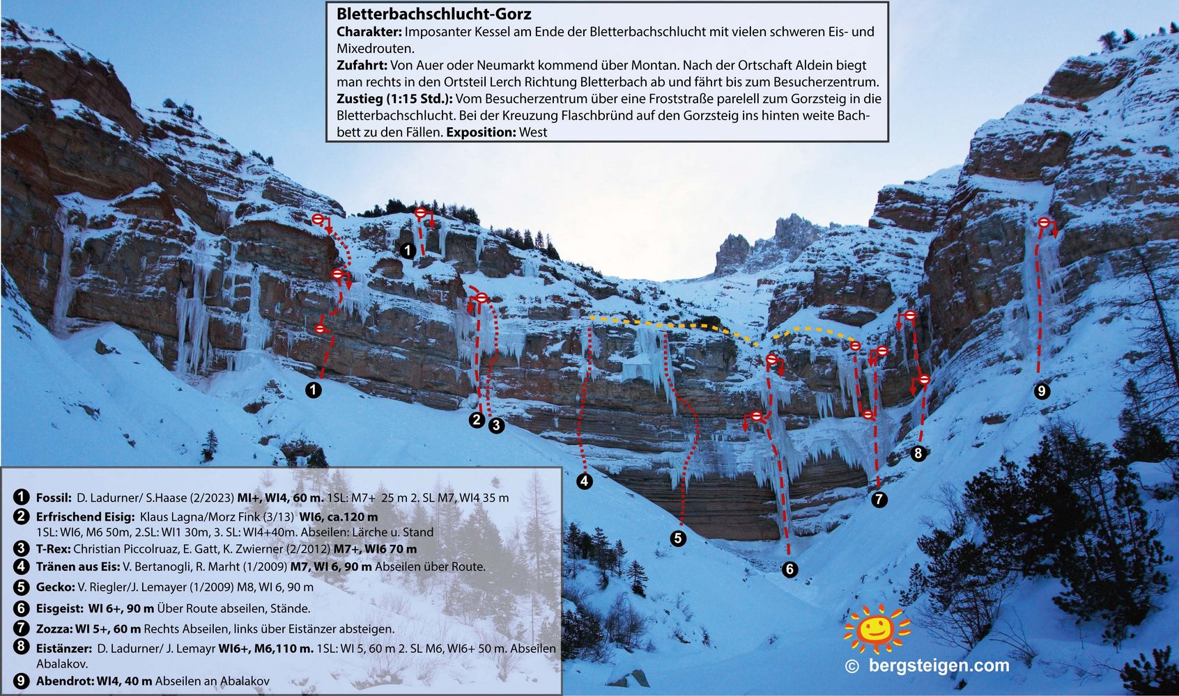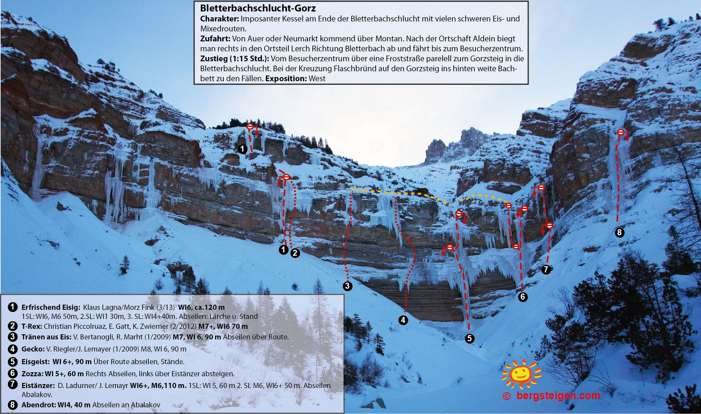 Routen im der Bletterbachschlucht/Gorz (siehe auch Topo 2):
