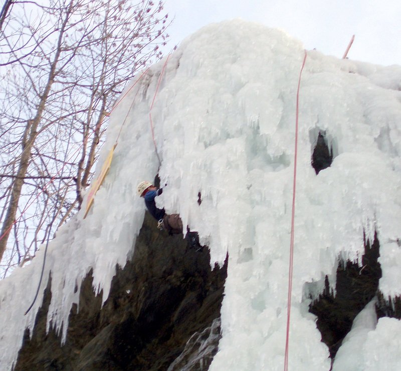 Div. Möglichkeiten in der Eiswand. Von WI 4- bis WI 6+ - siehe Übersichtsbild bzw. Topo.