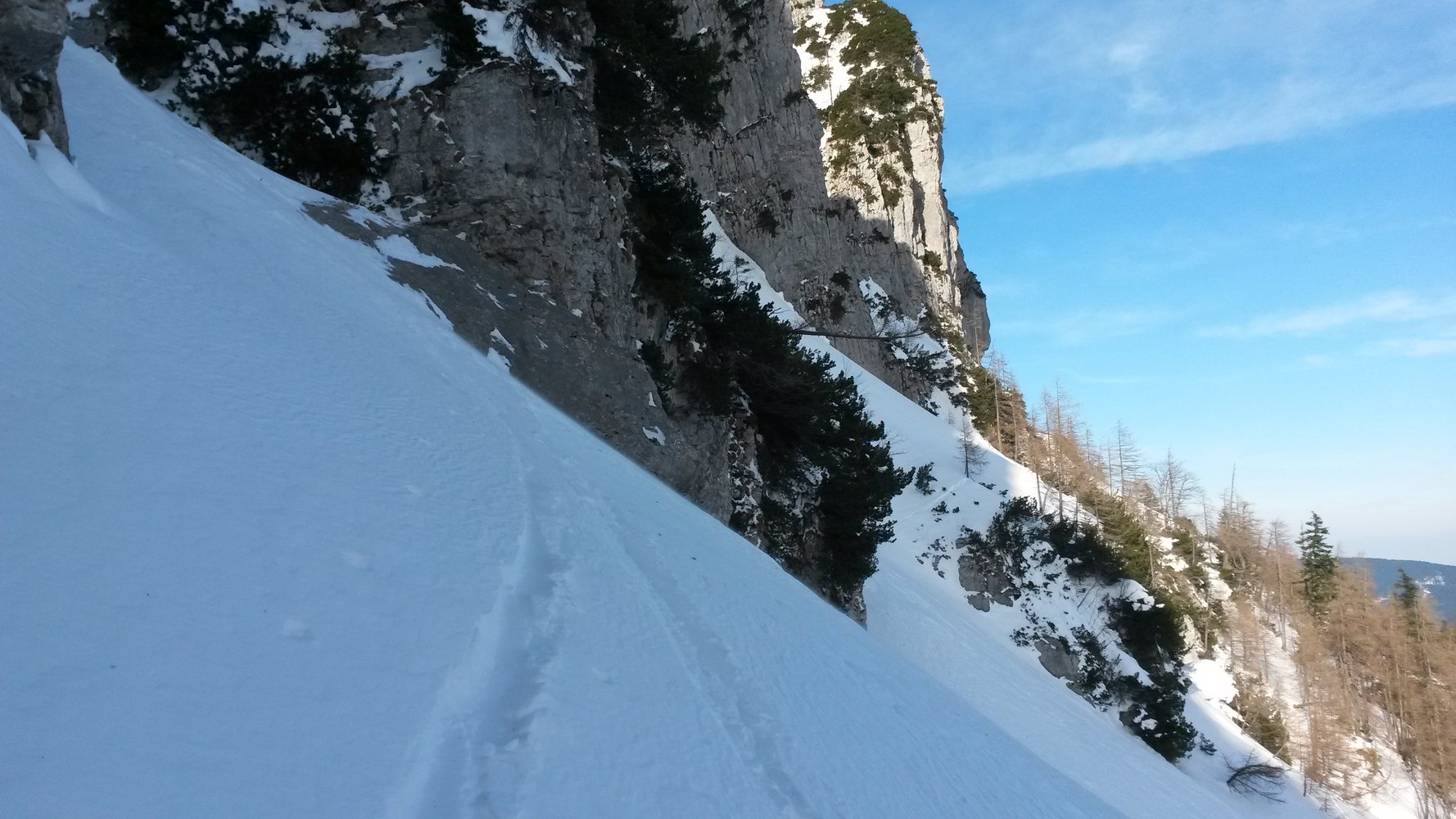 Lawinenlage und tageszeitliche Erwärmung beachten. Spaß und Sinn macht die Tour erst, wenn sich der gefallene Pulverschnee verfestigt bzw. umgwandelt hat. Bei Plusgraden besteht erhöhte Steinschlaggefahr.