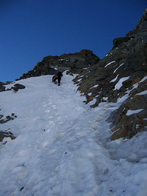 Sehr schöner und lohnender kombinierter Anstieg in der Glockner Nordwand. Der aber nur von Kletteren gewagt werden sollte, die sich schnell und sicher im kombinierten Gelände bewegen können.