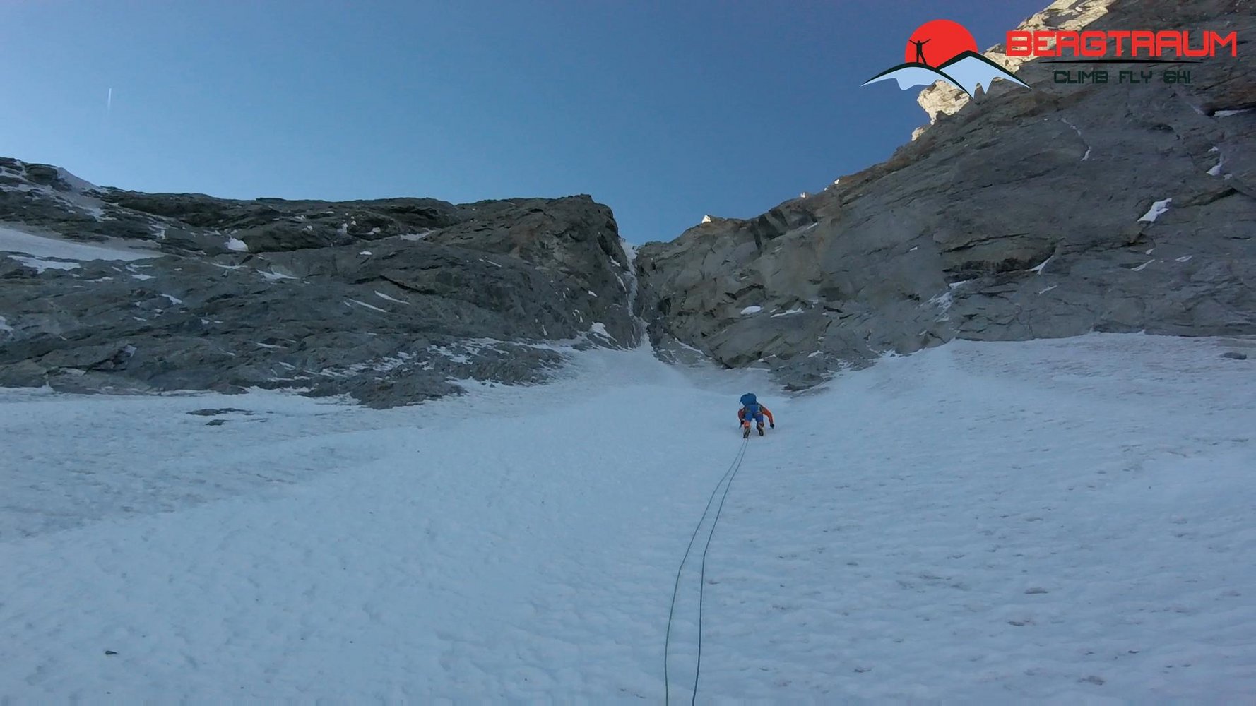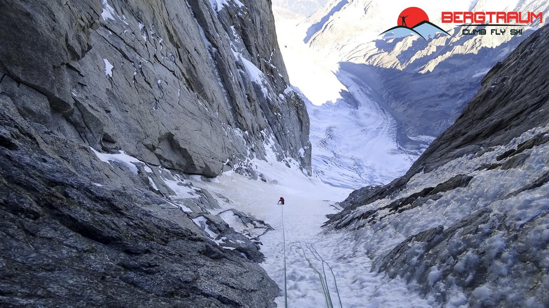 Der lange Zustieg, die Abgeschiedenheit und der Anstieg selbst machen diese Tour zu einem absoluten Erlebnis in einer unvergleichlichen Umgebung. An diesem Berg gibt es keinen leichten An- und Abstieg. Die „normale“ Linie durch das Leichentuch folgt dem Eisfeld nach links auf den Hirondelles Grat (bei ca. 3800 m). Der Direktausstieg folgt einem markanten Gully gerade hoch, wendet sich dann nach rechts und endet erst bei knapp 4.100 m am Grat.
