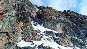 Einige Stellen M5, überwiegend M3-M4, Schnee bis 60°.