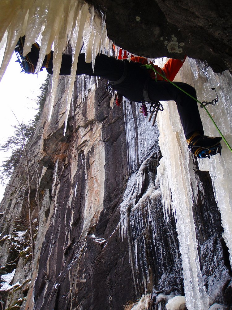 Ernsthafte Eiskletterroute im oberen Eisgrad! Der Fall ist sehr selten aufgeeist!