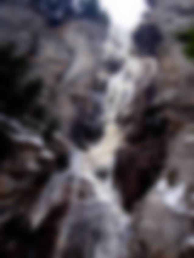 Abseilen über die Route oder rechts durch den Wald (teilweise Abseilen und Abklettern) hinunter zum Einstieg.