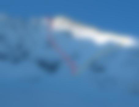 Die Randkluft an einer günstigen Stelle überqueren (meist ganz links oder ganz rechts) und dann gerade hoch (ca. 300 HM), am Ende in einer Rinne (oft ausgeapert) zum schmalen Gipfelgrat und in wenigen Schritten auf den Gipfel.