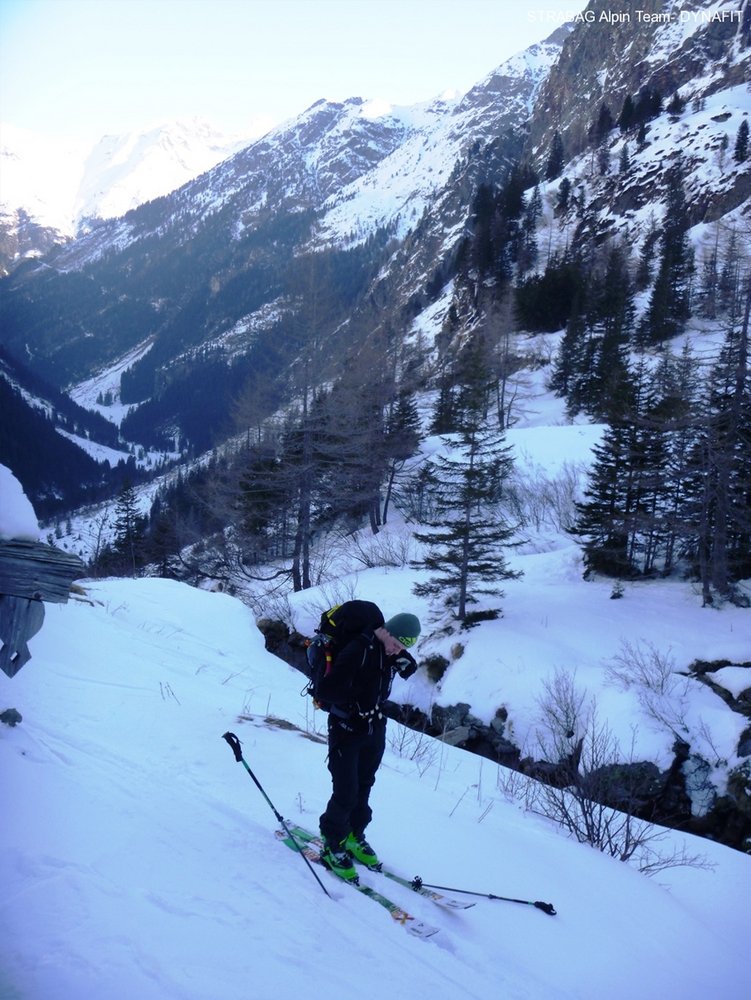 Entweder über den felsigen bzw. verschneiten Nordwestgrat (im Sommer SG 2) oder über den sog. „Historischen Weg“- rote Markierung) runter. Bei Schneelage sind die meisten Markierungen nicht sichtbar. Es empfiehlt sich, immer etwas unterhalb des Nordwestgrates in der Südflanke des Berges schräg Richtung Westen in den Firnrinnen abzusteigen bis zur Gollingscharte (2326 m). Von dort über die Nordostflanke steil und direkt runter zum Einstieg bzw. in den Gollingwinkel.