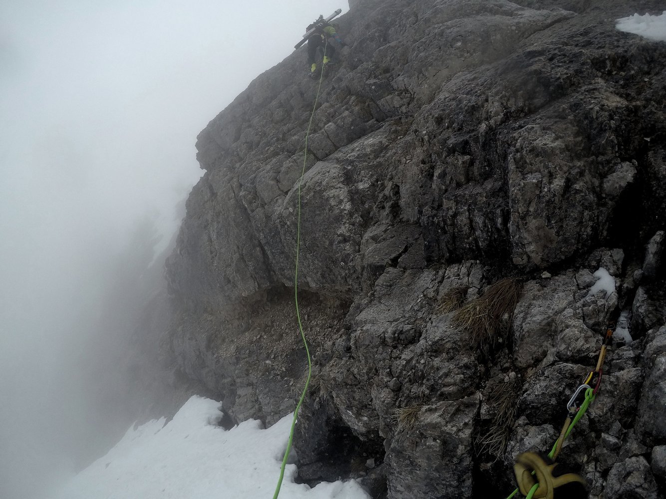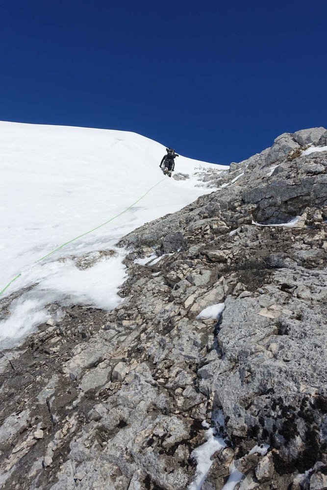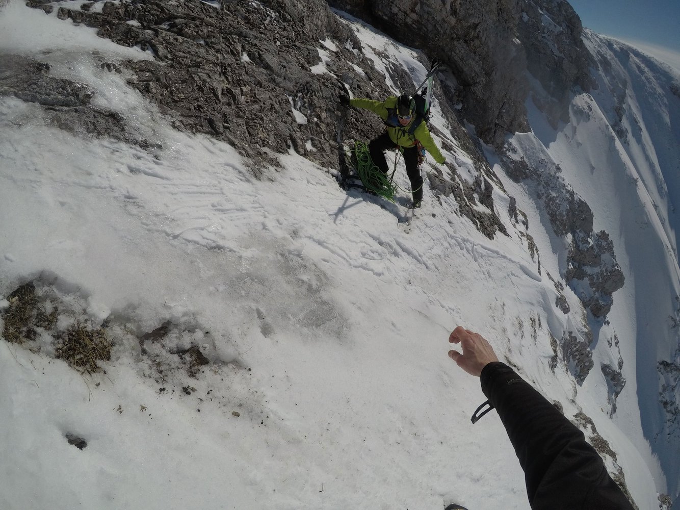 Komplette Eisausrüstung, Helm!, bei Seilschaft event. mobile Sicherungen, Schlaghaken, Firnanker etc.