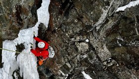 Seillängen 4–5: Steilere Passagen mit senkrechtem Eis und Fels, Schwierigkeit bis M5