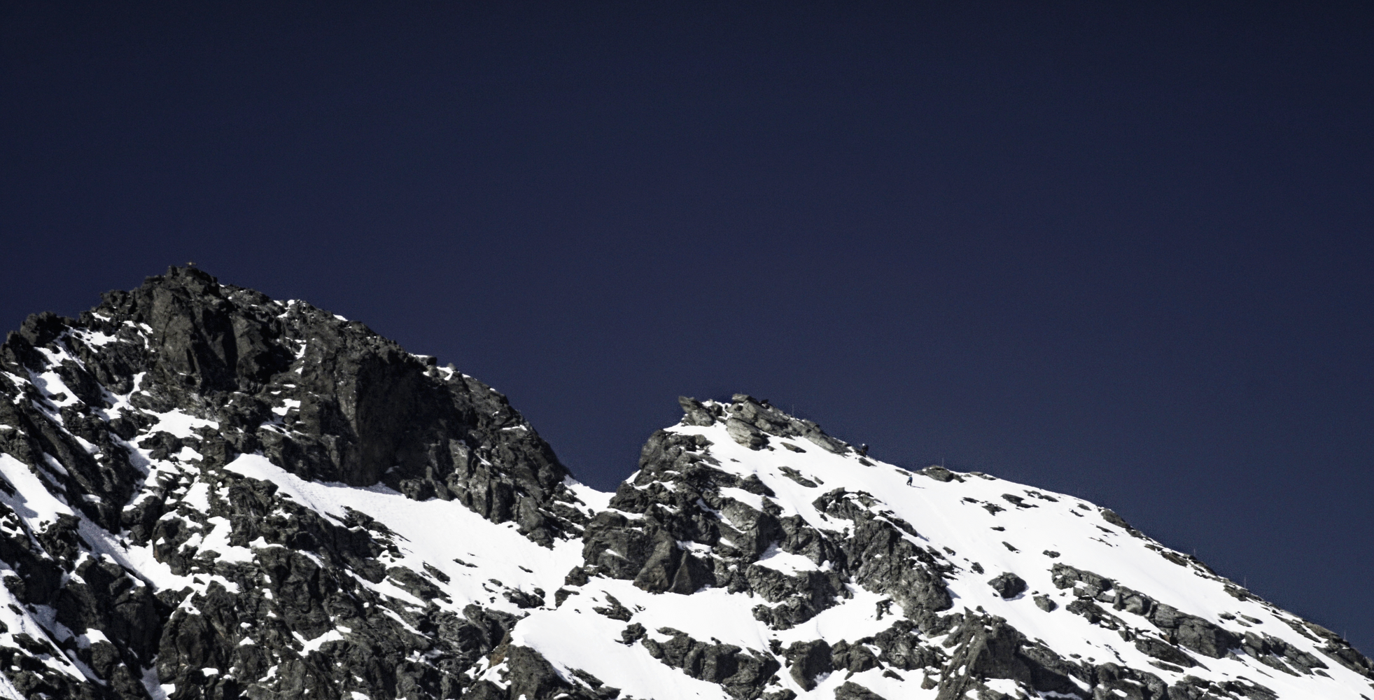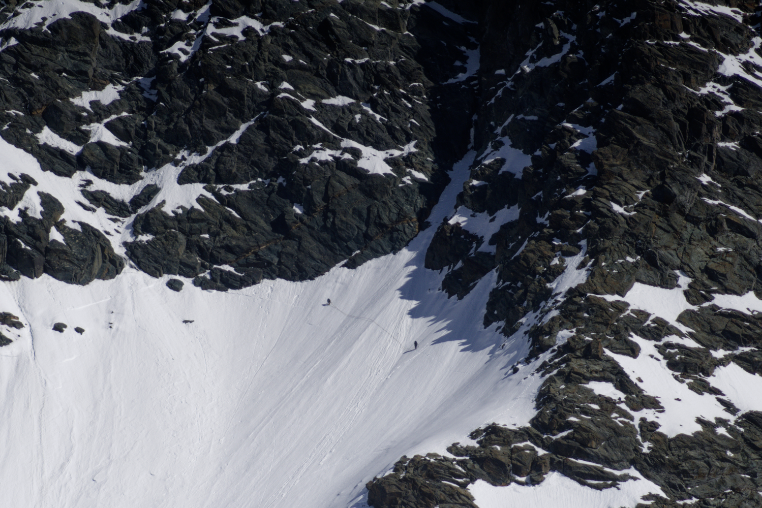 Die Kletterroute beginnt auf 3200 m Höhe am Einstieg der Südwand. Skitourenski werden empfohlen.
