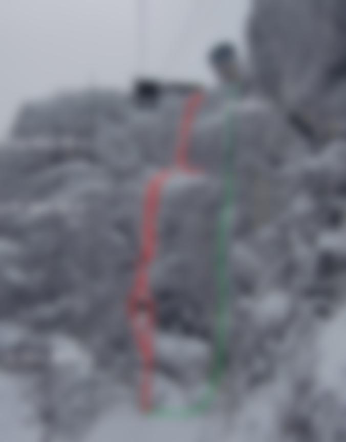 Mit Bohrhaken gesicherte, anspruchsvolle Eis und Mixedlinie. Die Route verläuft direkt unterhalb der Bergstation und ist eine Der von dem Bergführer Stefan Reich künstlich vereiste Eiskletterlinie. 10000 Liter Regenwasser aus einem Tank der Karwendelbahn machten es möglich!