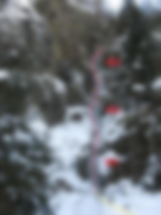 Leichter, schmaler Eisgully beim Klettergarten in Oberried. Die Tour ist meist WI2, eine Steilstufe hat aber ca. WI3. Der Anstieg durch den Gully ist 50 m lang.