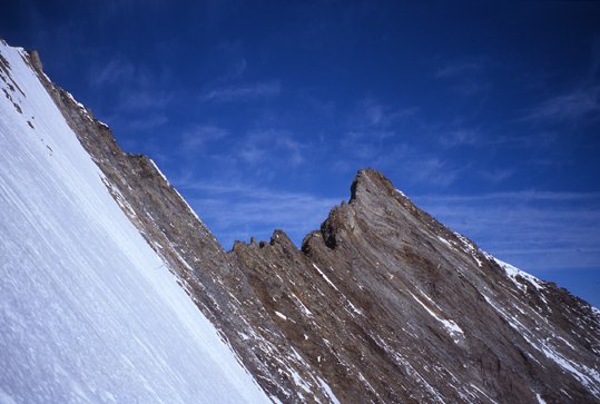 Blick zum Grat, Blick aus der NO-Wand auf den langen Grat und den Nadelhorngipfel, Foto: Axel Jentzsch-Rabl