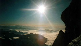 Silbersattel auf 4515m sehr windanfällig. Ab hier Materialdepot und weitere 80hm über gut versicherte Felsen zum Vor-Gipfel(4634m). Stellen I bis II aber durchgehend mit Seilen und Bohrhaken versichert. Zeit ab Sattel bis Vor-Gipfel 0,5h.