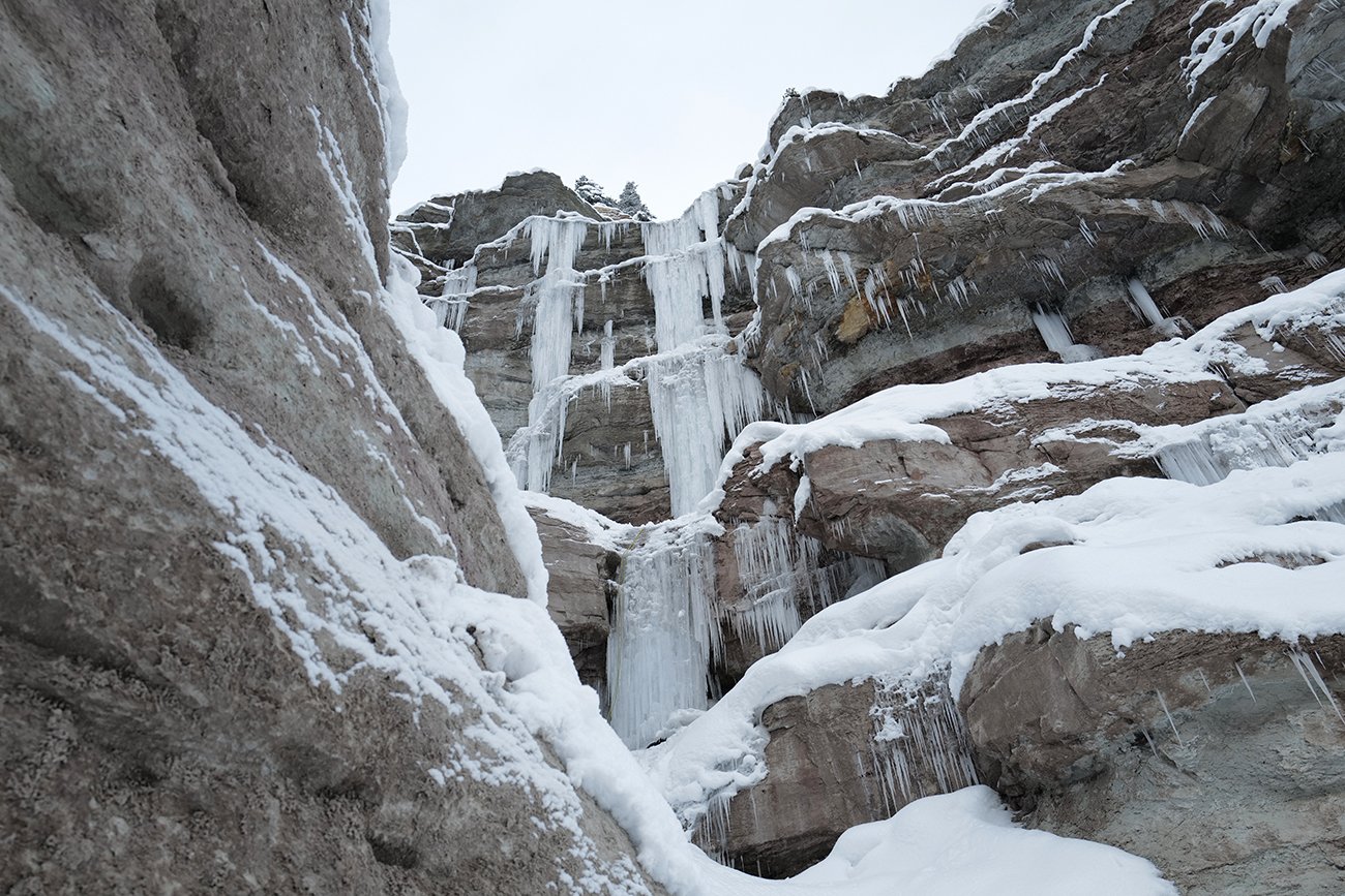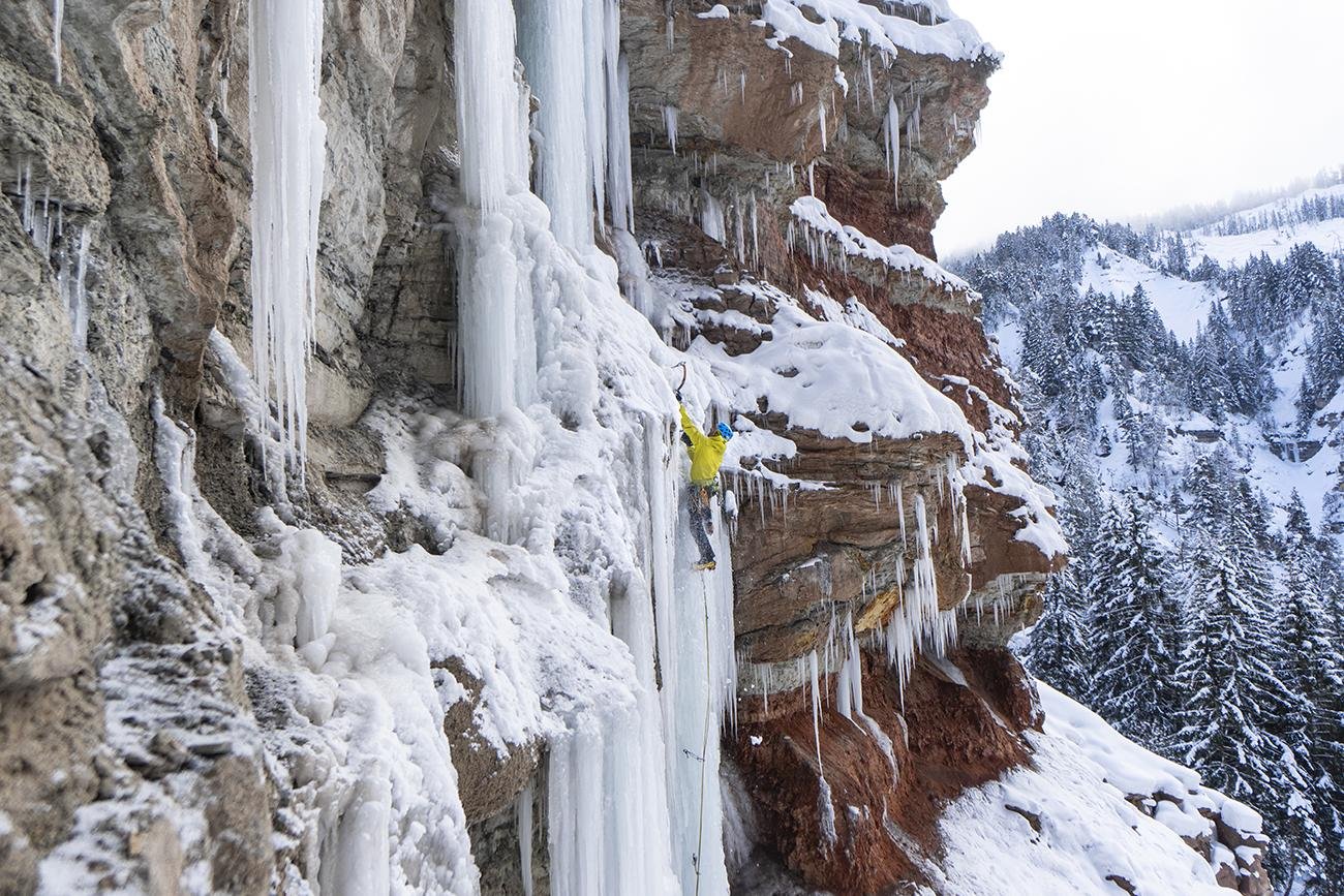 Eine Linie im Bletterbach. Lt. Hannes Lehmayr und Daniel Laturner ist diese Linie mal vor vielen Jahren geklettert worden, jedoch in keinen Topo oder Führer vermerkt. Die Linie ist ungefähr 80 Meter hoch und weißt immer wieder kurze steile Passagen auf. Eine Mindestanforderung von WI5/+ ist sicherlich erforderlich. Auch einige tricky Mixed-Moves sind gerade im Austiegsbereich nötig gewesen, da es stellenweise kein oder nur wenig Eis gibt. Im ganzen gesehen eine coole Linie in einem besonderen Ambiente....... wenn sie sich bildet.