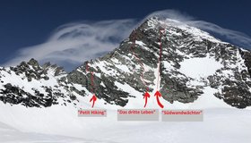 Die Route endet am Stüdlgrat. Am Schnellsten über den Stüdlgrat wieder zum Einstieg absteigen und über den Zustiegsweg retour. Mann kann natürlich auch über den Stüdlgrat weiter auf den Gipfel des Großglockners aufsteigen und über den Normalweg runter.