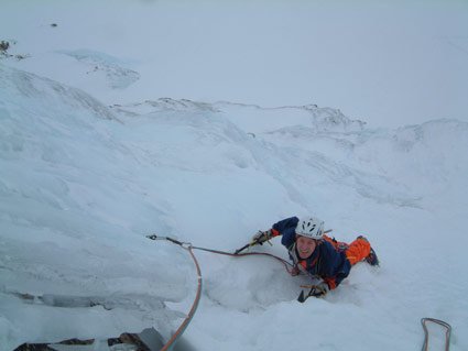 Der Fall hat die Schwierigkeiten im unteren Abschnitt, oben folgt Genußkletterei im max. 2ten Eisgrad.