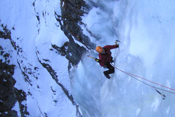 250 m lange Rinne mit Stellen WI 2, dann 2 schwere Seillängen und am Ende wieder leichter.