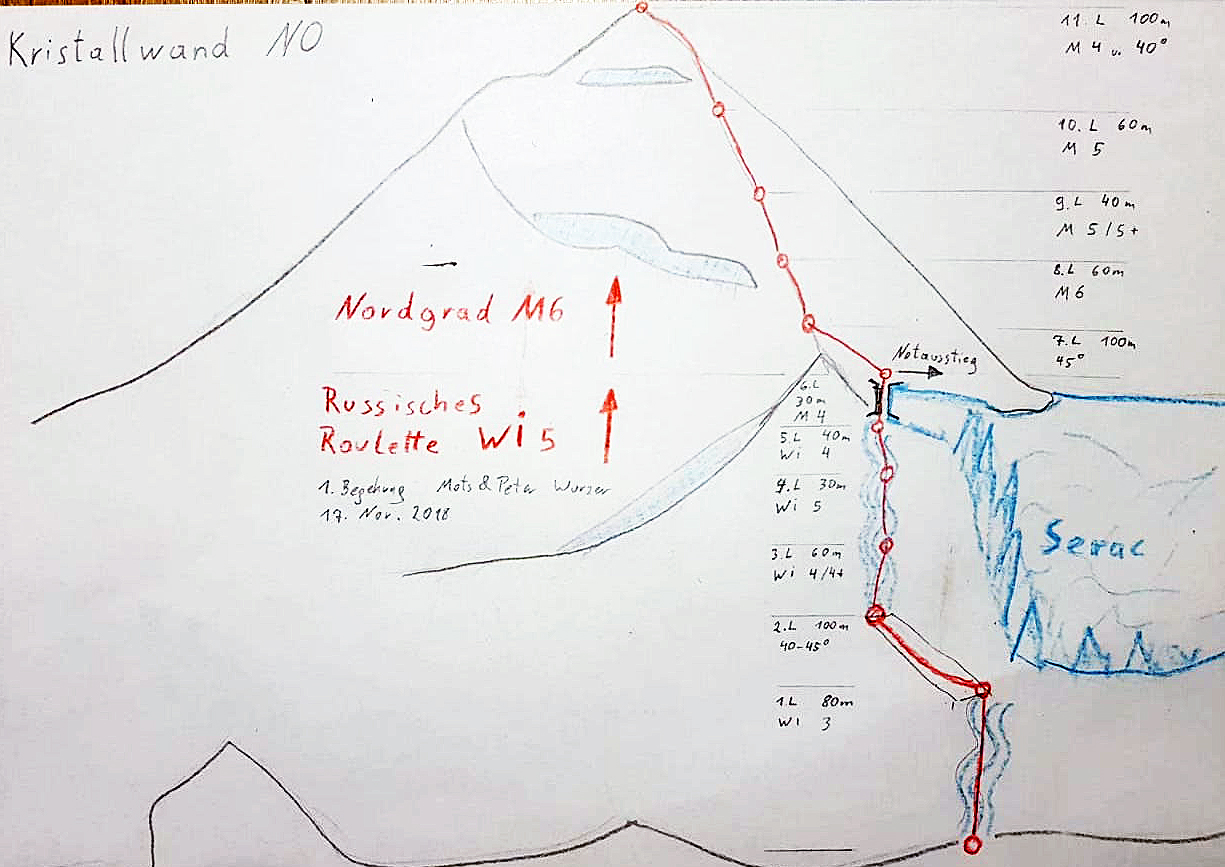 Die Geschichte dieser Erstbegehung find ihr hier https://bergfuehrerkals.wordpress.com , https://www.bergsteigen.com/news/neuigkeiten/russisches-roulette/