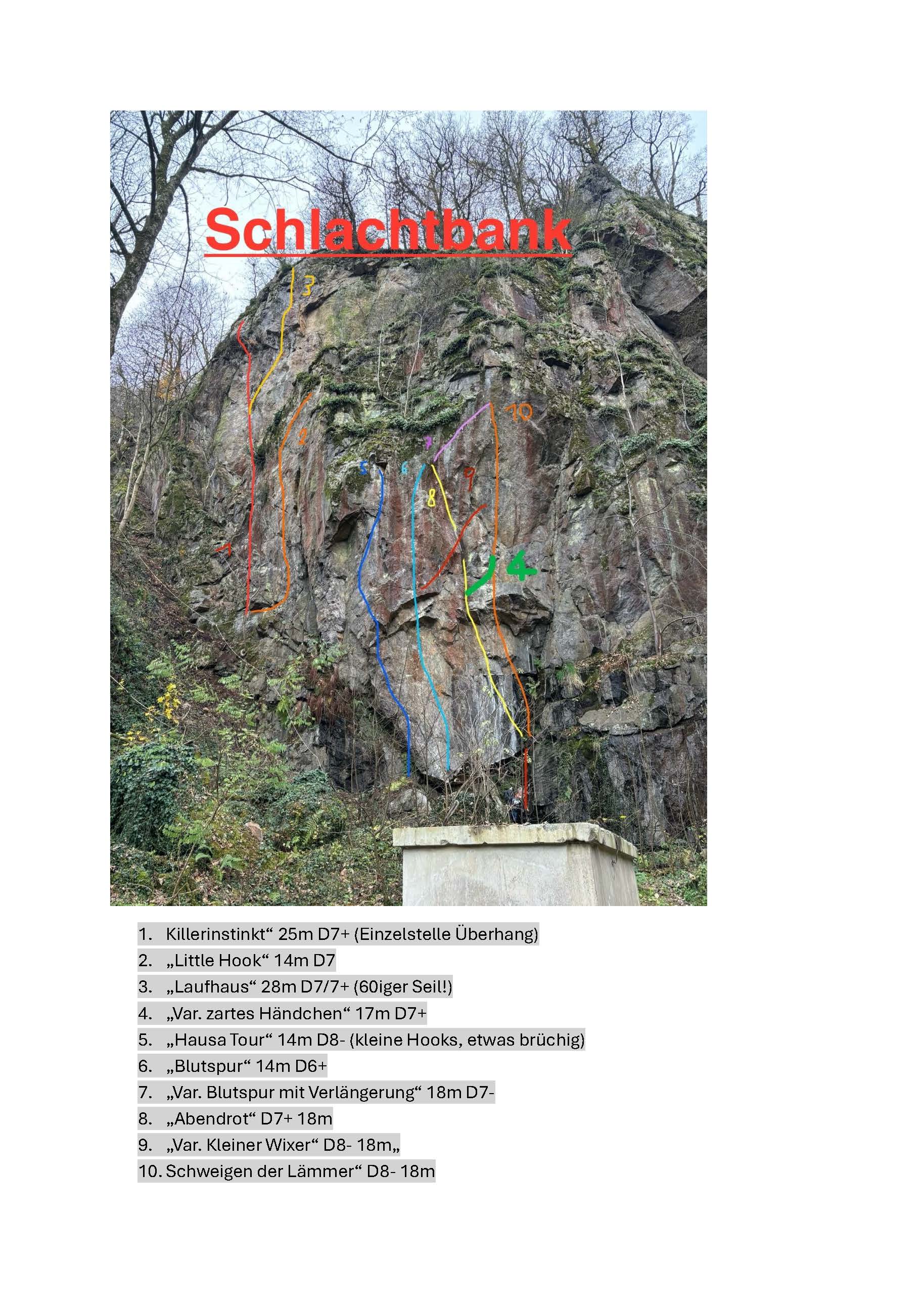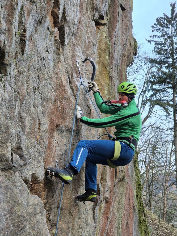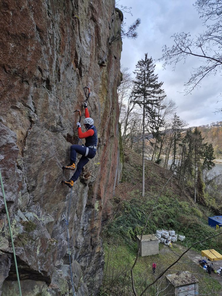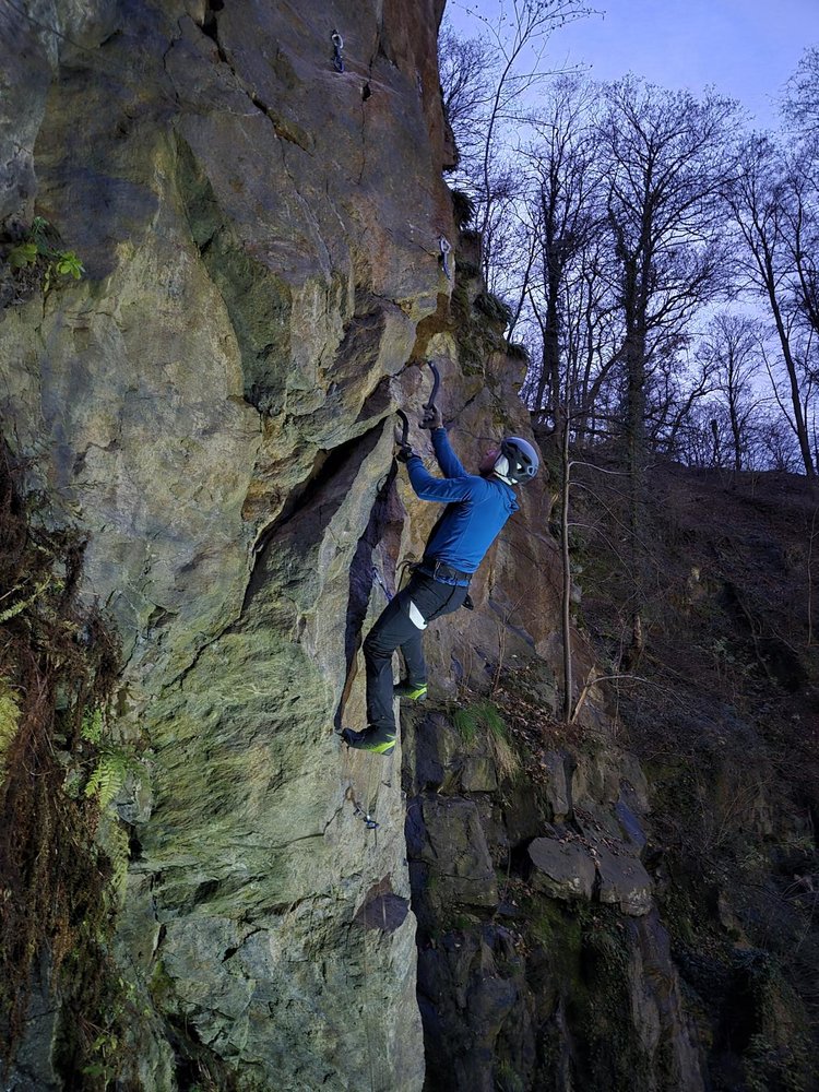 Cooler Drytooling Spot an der Donau bei Linz mit aktuell 10 Routen mit Schwierigkeit D6+ bis D8-. Die Touren wurden mit sehr viel Aufwand erschlossen – geklettert wird an tlw. künstlichen Hooks und natürlichen Rissen. Der Fels ist okay, optimal fürs toolen – schattiges Platzerl und fast keine Sonne. Sodass sich sogar Eisauflagen bei minus Temperaturen bilden – wurden bereits begangen.