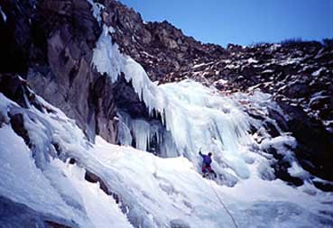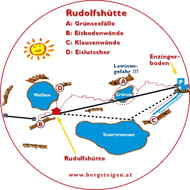 Für Sportliche oder Sparsame dauert der Aufstieg Enzingerboden - Mittelstation ca. 45 min. Man kann dann gleich über den Gruensee unter die Wasserfaelle queren und erreicht dann in ca. 70 min die Einstiege. Alles mit Tourenski.