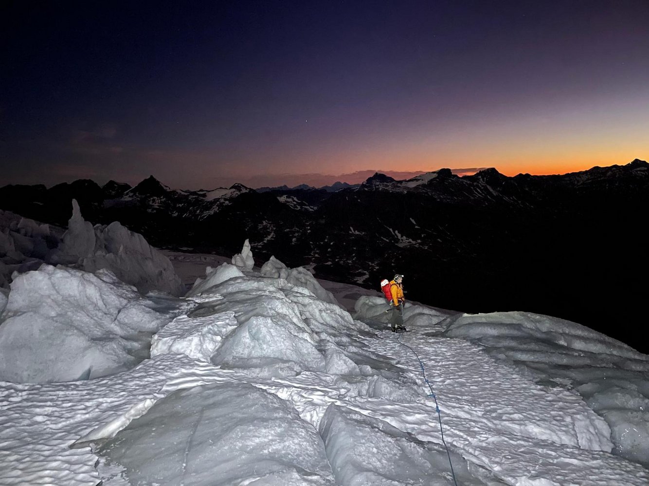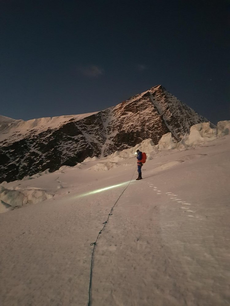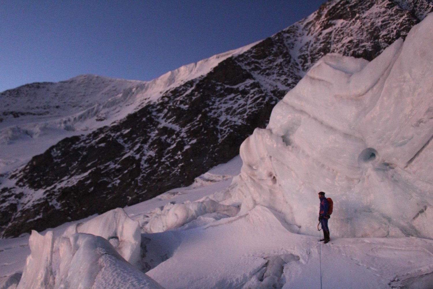 Von der Neuen Prager Hütte je nach Verhältnissen über das spaltenreiche Schlatenkees zum Einstieg. Im Herbst 2024 war dies mit kleinen Klettereinlagen im großen Gletscherbruch auf direkter Linie möglich. Ggf. muss der Gletscherbruch aber auch unten oder oben rum umgangen werden.