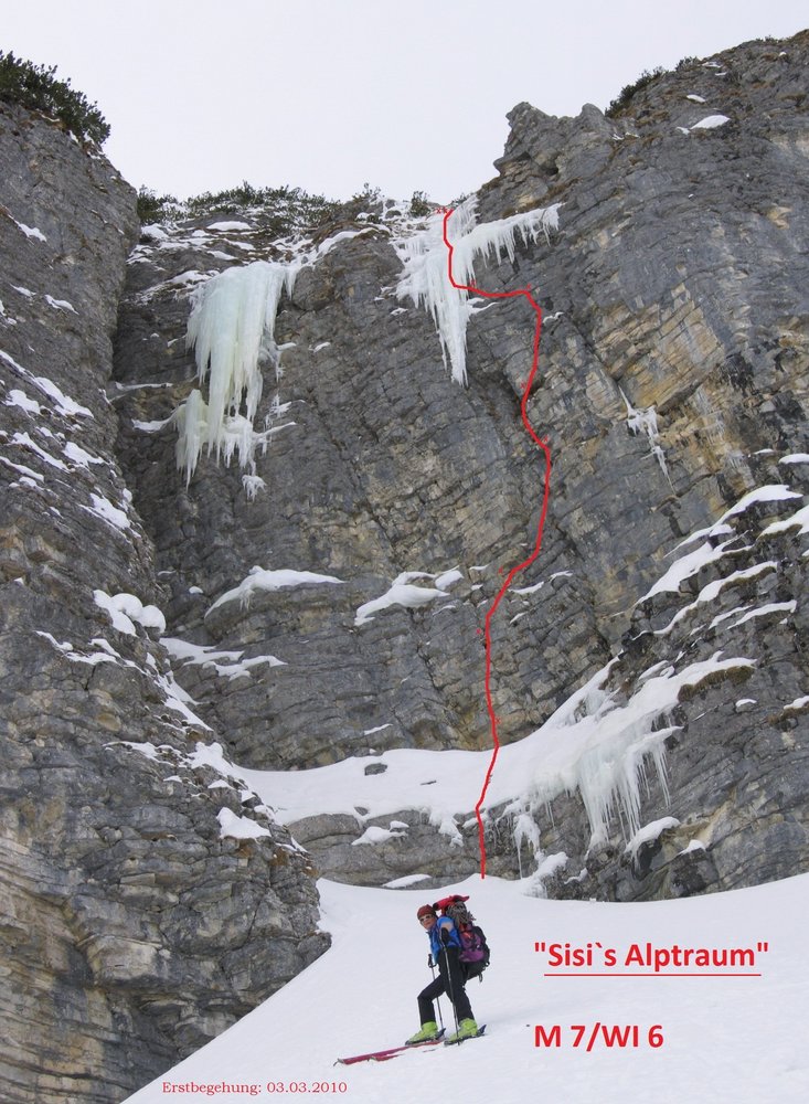 Mixedlinie gleich neben der Tour "Kaisersäule" an derGreimuth ostwand Erst Felsteil, anschließend steiler Zapfen.