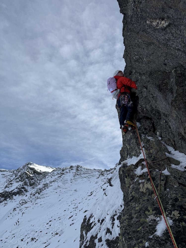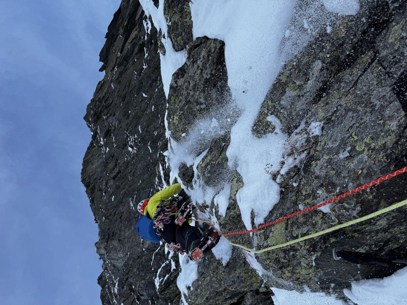 Eiskletterausrüstung, einen ganzen Satz Friends und 10 Expressschlingen, eventuell Hammer und Haken, Sicherungsmaterial und Schlingen, 60 m Einfachseil oder Halbseile