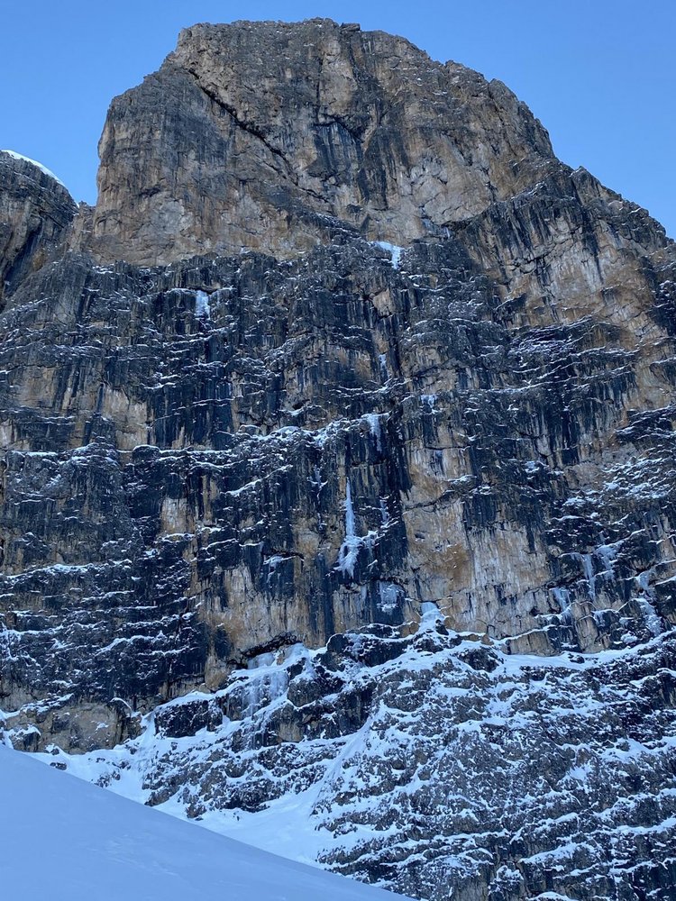 Markus Huber und Peter Zischg, 19.+ 27.Dezember 2020 und am 10.Jänner 2021 M.H. mit Igor Griesmair. Alle Seillängen wurden von unten eröffnet.
