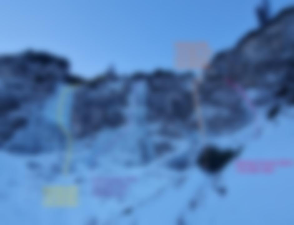 Zylinder Couloir: 1.SL WI3+ 50 m / (es kann nach links zur Grillhub-Route ausgequert werden, und die letzte Steilstufe (WI4+)davon geklettert werden.