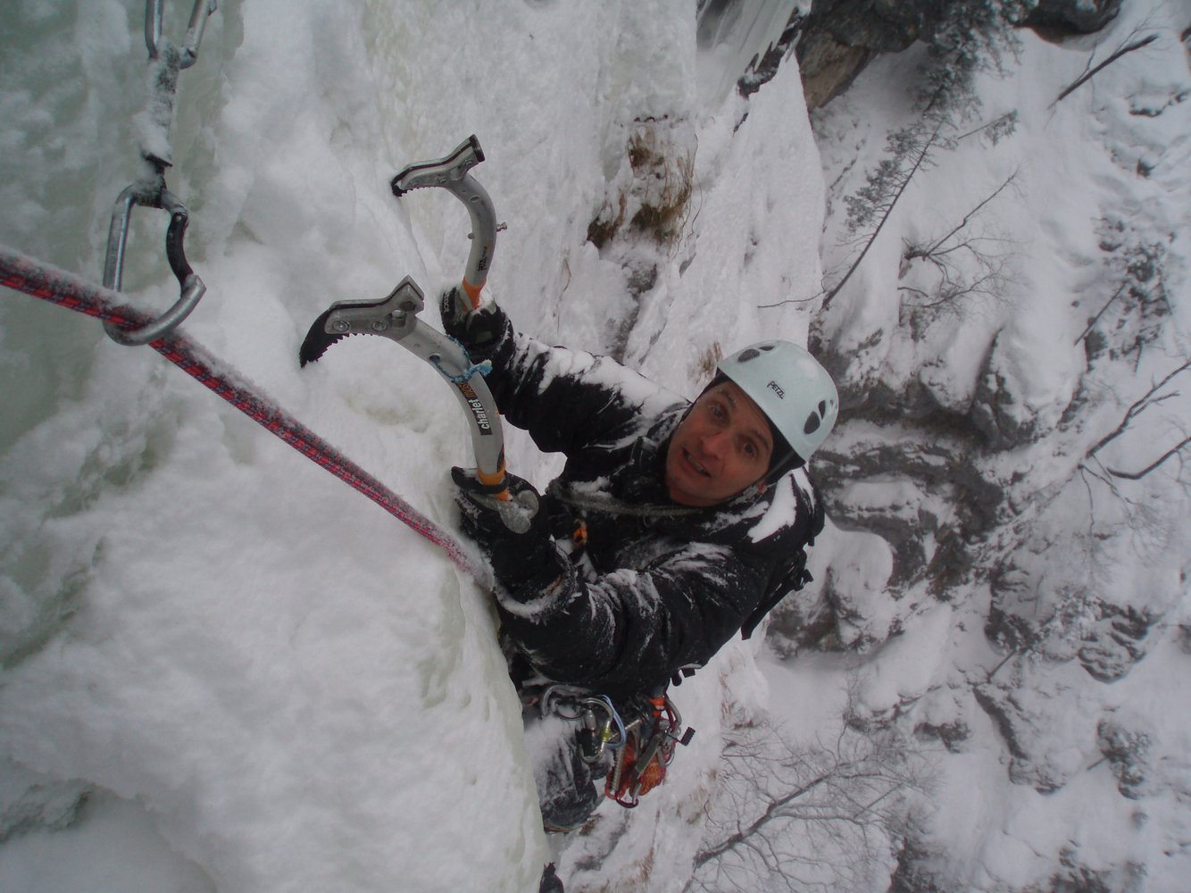 Im Mittelteil zwei Seillängen Fels bzw. Mixedkletterei mit knackigem Abschlussüberhang, der wieder ins Eis leitet. Sehr wenig Möglichkeiten zusätzliche Sicherungen im Fels anzubringen.