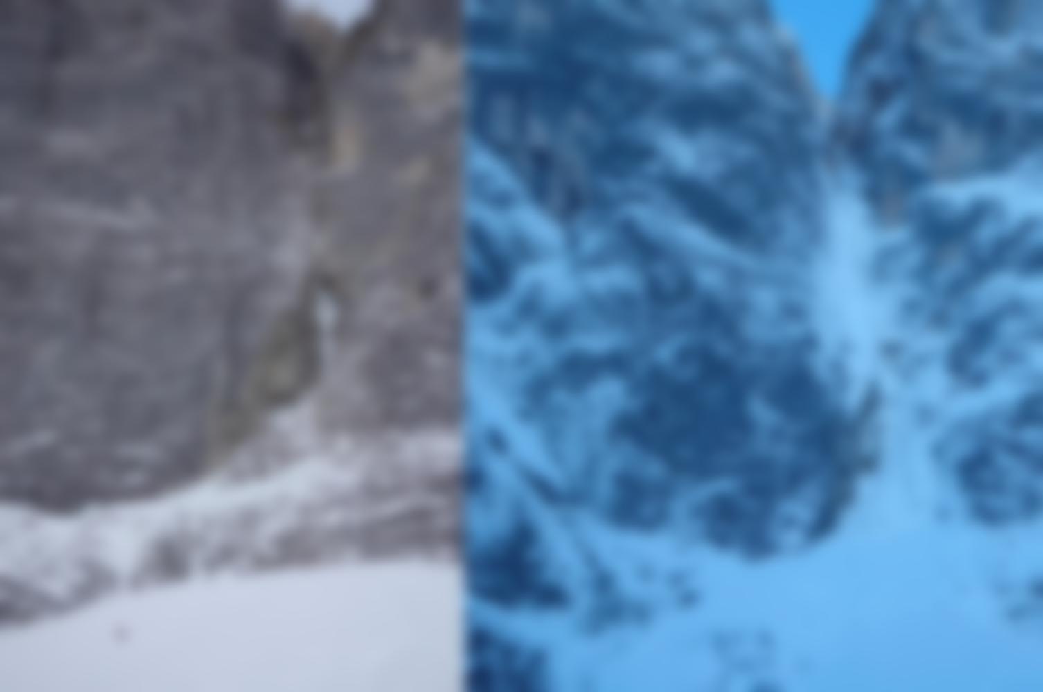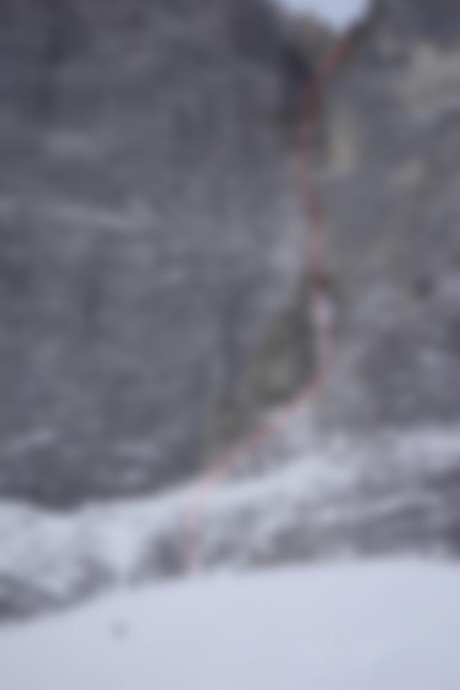 Alpin-herb-klassisch. Einsamer Wolf. Manisch-depressive Konditionen – man beachte den Unterschied 12.2020 zu 03.2018. Wer’s drauf hat, kann hier alles Mögliche erleben – ohne Garantie für nichts. Verhältnisse: Müssen stimmen – genug Eis und stabile Schneeverhältnisse, Spindrift sehr problematisch (Sonne in den Begrenzungswänden – extrem früher Einstieg scheint ratsam), Fels oft kompakt, aber nicht fest: Haken von der Sorte fest-fester-lose üblich. Vermutlich früh im Winter bei geringer Schneelage nach feuchtem Herbst/Vorwinter wie heuer, evtl. auch im Spätwinter/Frühjahr: Dann entfallen wohl einige Steilstufen inkl. inklusive der Schlüsselseillänge, allerdings fraglich, ob genug stabiles Eis in den schwierigen SL vorhanden ist.
