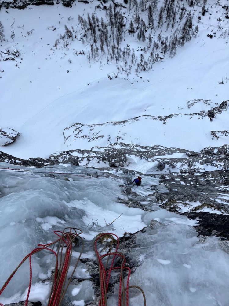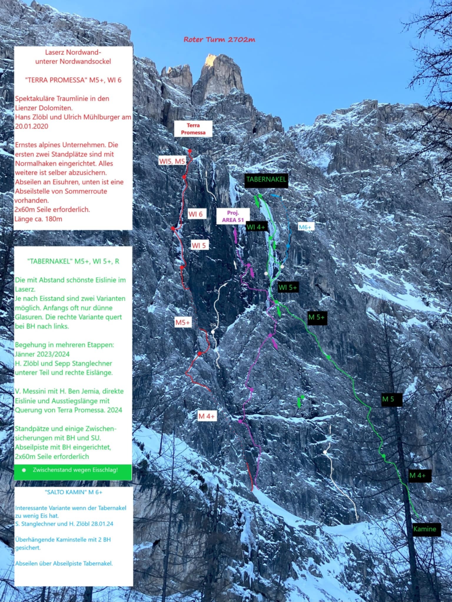 Je nach Eisstand zwei Varianten möglich. Anfangs oft nur dünne Glasuren. Die rechte Variante quert bei BH nach links.